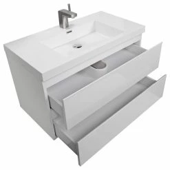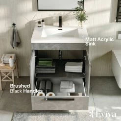 Cheapest 🎁 Eviva LLC Eviva Lugano Cement Gray Modern Bathroom Vanity W/ White Integrated Top, 30″ 🎁