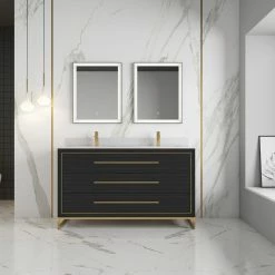 New 🧨 Concept Baths And Interiors ConceptBaths Angela 59″ Double Vanity, Maple Gray 🥰