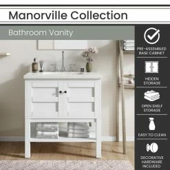 Brand new 🔥 Hanover Manorville 31″ Bathroom Vanity, Sink, Top, 2 Doors, Bottom Shelf, White 🧨