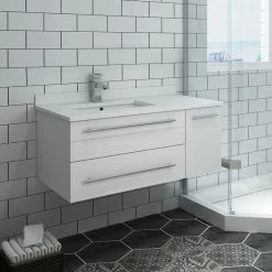 Buy 🎁 Fresca Lucera Wall Hung Bathroom Cabinet With Top & Undermount Sink, White, Left, 36″ 🔥