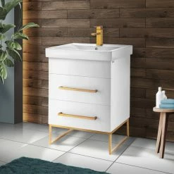Discount 🥰 Fine Fixtures Modern Vanity Set, White, 24″, Satin Brass Hardware 😀