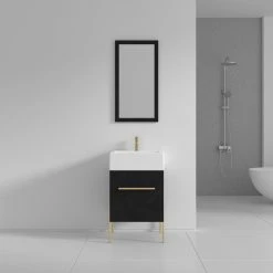 Discount 🤩 Fine Fixtures Modern Vanity Set, Black Marble, 20″, Satin Brass Hardware ⌛