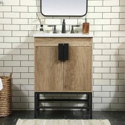 Flash Sale 🎉 Elegant Furniture & Lighting 19″ Modern Natural Oak-Light Bathroom Vanity 👍