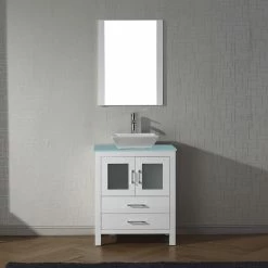 Top 10 💯 Virtu USA Dior 28″ Single White, Aqua Tempered Glass Top, Square Sink, Faucet, Mirror ⭐