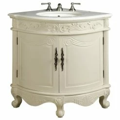 Promo ✔️ Chans Furniture 24″ Antique-Style White Corner Shape Bayview Bathroom Sink Vanity 🔔