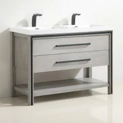 New ❤️ Dowell K&B Supplies Rey 48″ Double Bathroom Vanity Set – Stone Grey 💯