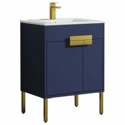 Buy 😉 Blossom Kitchen & Bath Supply Bari Vanity With Ceramic Sink, Navy Blue, 24″ ⌛