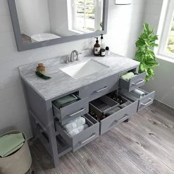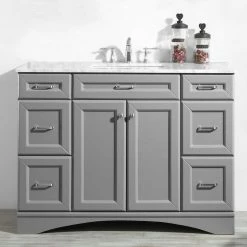 Buy 🌟 Vinnova Naples Vanity In Gray With Carrara White Marble Countertop, 48″, Without Mirror 🥰