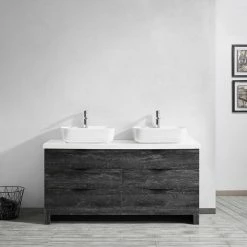 Wholesale 👏 Vinnova Spencer 60″ Vanity, Gray With Manufactured Stone Top, White 🔥