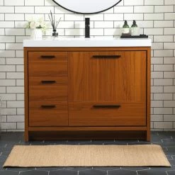 Promo 🤩 Elegant Furniture & Lighting Walker 42″ Single Bathroom Vanity, Teak ⭐