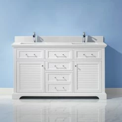 Discount 👍 Vinnova Lorna White Bathroom Vanity Set, 60 Inch, Without Mirror 🔥
