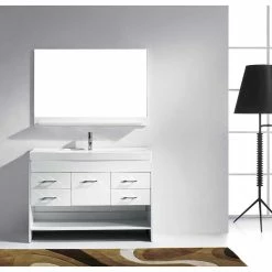 Budget ❤️ Virtu USA Gloria 48″ Vanity, White, Polished Chrome, Mirror 🎁