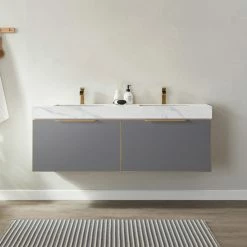 Deals 🔥 Vinnova Alicante Vanity With Stone Countertop, Elegant Grey, 60″, Without Mirror 🥰