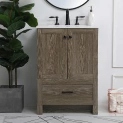 Best reviews of 🥰 Dowell K&B Supplies Wilson 24″ Single Bathroom Vanity Set, Grey With Black Sink 👏