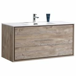 Best Sale 🌟 KUBEBATH De Lusso 48″ Wall-Mounted Single Bathroom Vanity In Nature Wood 🤩