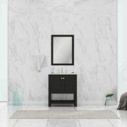 Outlet 🤩 Alya Bath Wilmington 30″ Bathroom Vanity With Carrera Marble Top, Espresso 💯