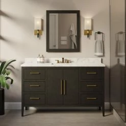 Buy 🌟 Vinnova Naples Vanity In Gray With Carrara White Marble Countertop, 48″, Without Mirror 🥰