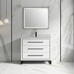 Cheap ⭐ Elegant Furniture & Lighting Kaden 48″ Single Bathroom Vanity Set, White 🔔