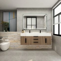 Hot Sale ✔️ Jade Bath Jessica 60″ Double Sink Wall Mounted Vanity With Sink, Rosewood 👏