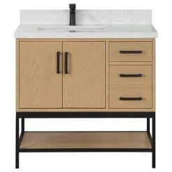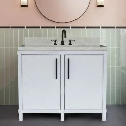 Coupon 🧨 A Touch Of Design 40″ Solid Wood Bathroom Vanity With Quartz Top, White 🌟