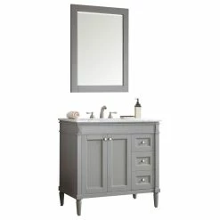 Coupon 🔔 Vinnova Catania 36″ Single Gray Vanity With Carrara White Marble Top, With Mirror 👏