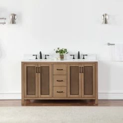 Hot Sale ⌛ Altair Hadiya Brown Pine Bathroom Vanity Set, 36″, With Mirror 🤩