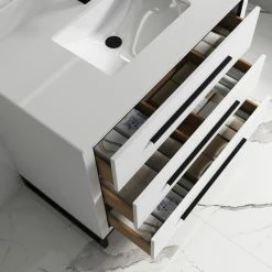 - Sintered natural stone Counter Top with under mount porcelain sink with overflow