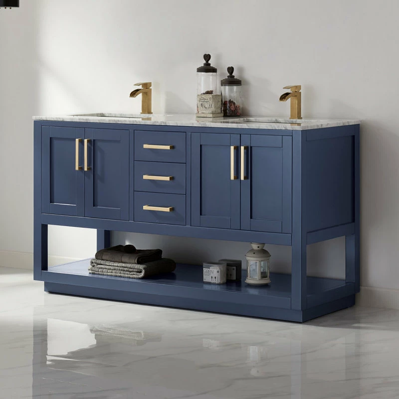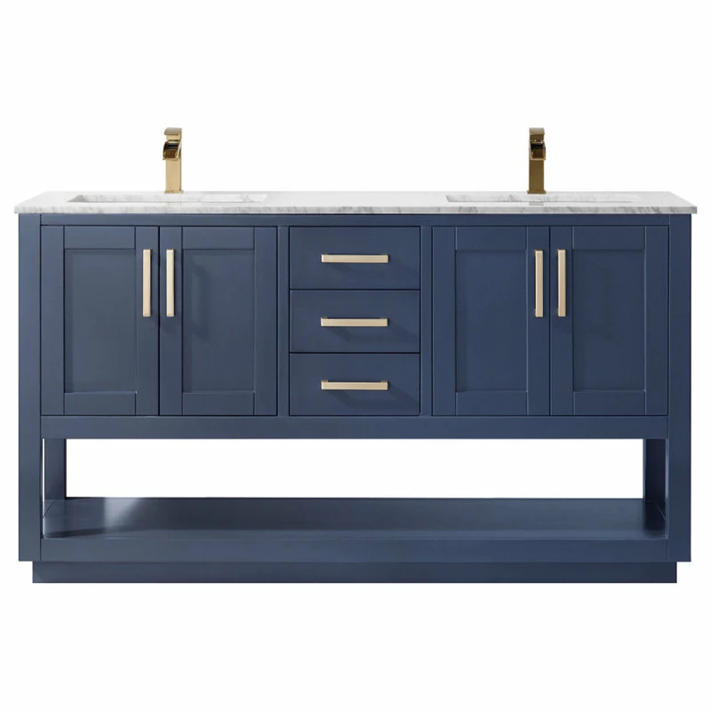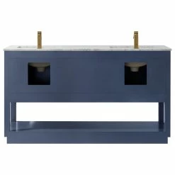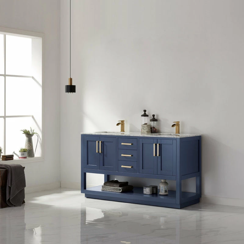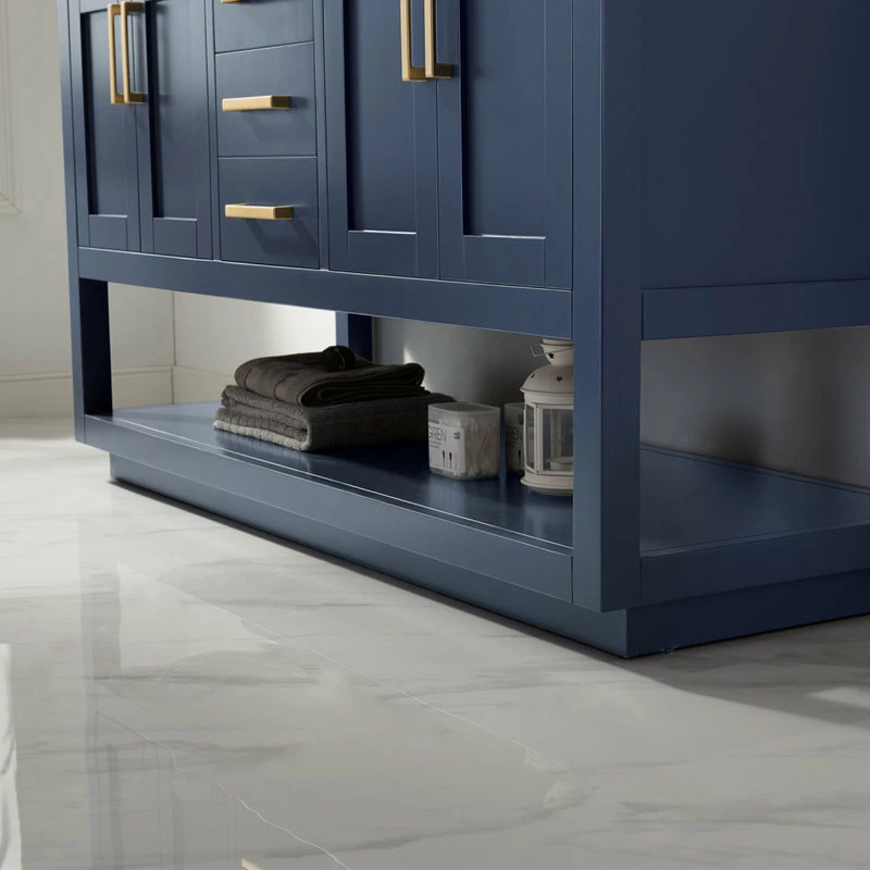 The Remi Vanity is proof that sometimes the simplest designs make the most powerful impact. With its clean silhouette and modern charm, this piece features a genuine marble countertop that contrasts beautifully with the minimalist cabinetry. The open shelf below offers the perfect storage space for spa towels and decorative items.