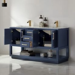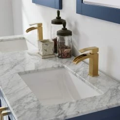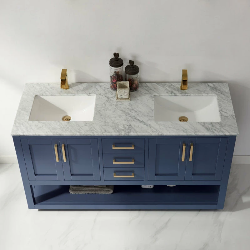 - Sink: Two rectangular, undermount ceramic basins with overflow included