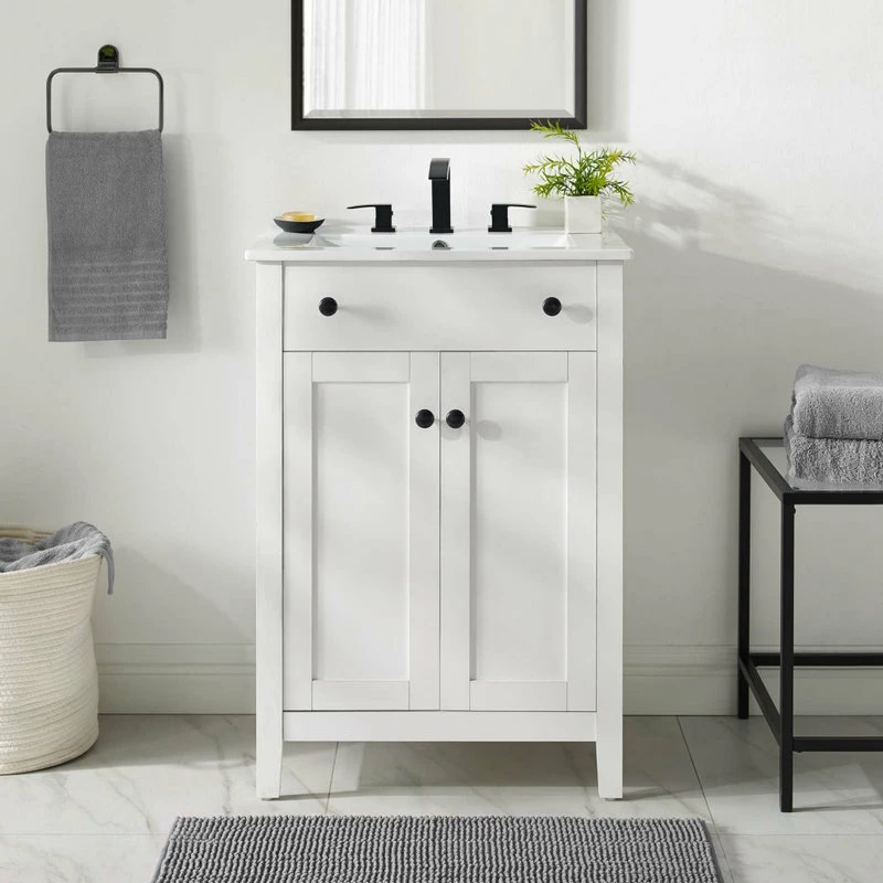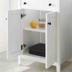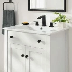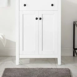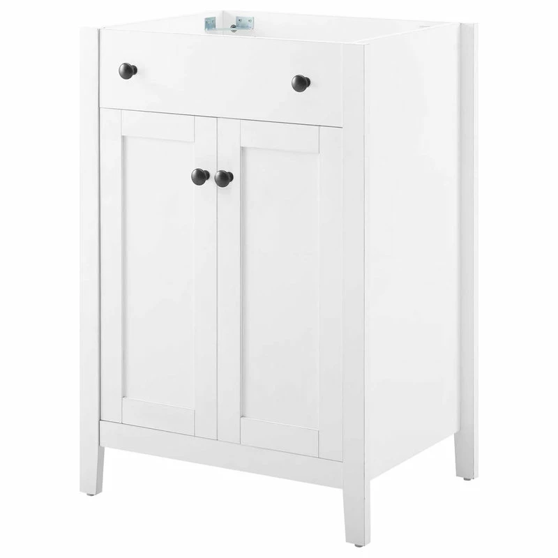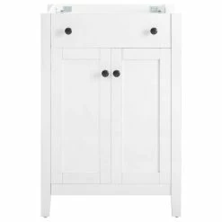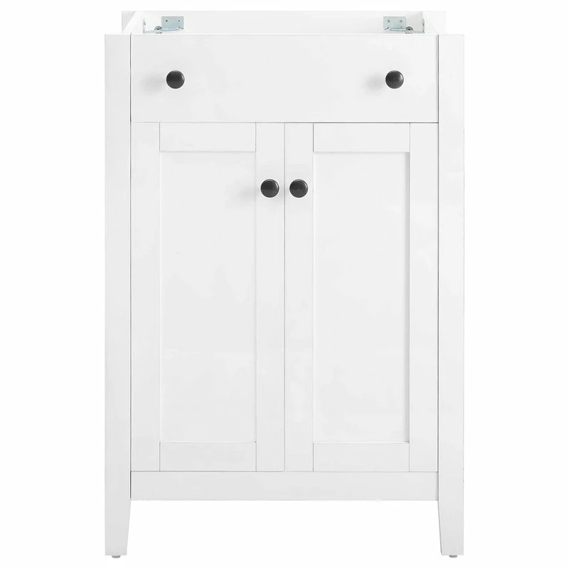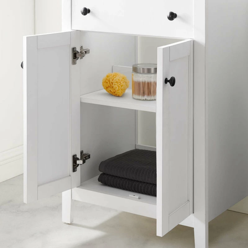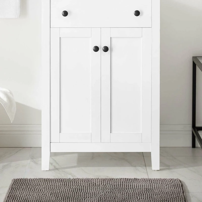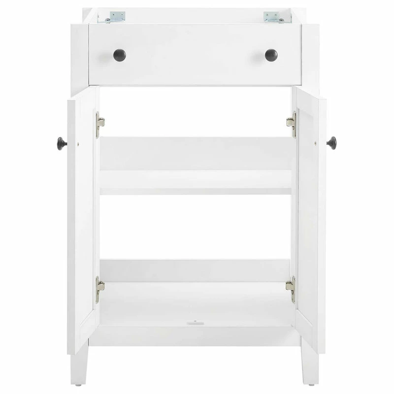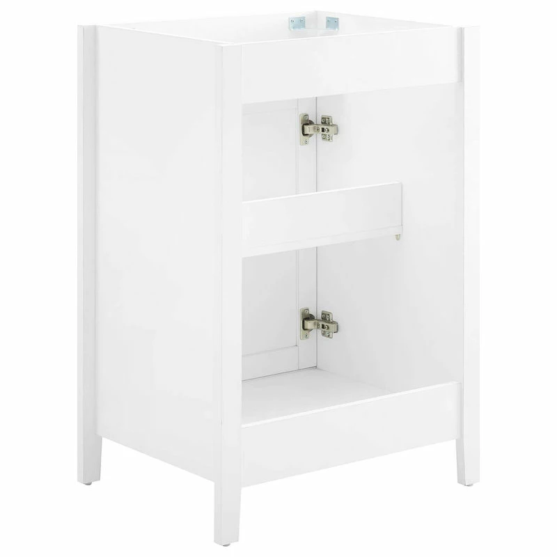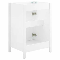Embrace the subtle sleekness of the Nantucket Bathroom Vanity. Nantucket features crisp lines and a stately design that seamlessly updates your bathroom decor. Solidly constructed from wood and MDF particleboard, the Nantucket Vanity sits on four tapered legs and provides hidden dual storage shelves with soft-close doors. The Nantucket Bathroom Vanity aligns style with function for a modern bathroom. Nantucket comes with non-marking foot caps to protect flooring. Assembly required, sink basin not included.