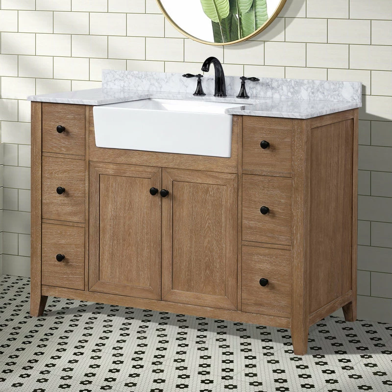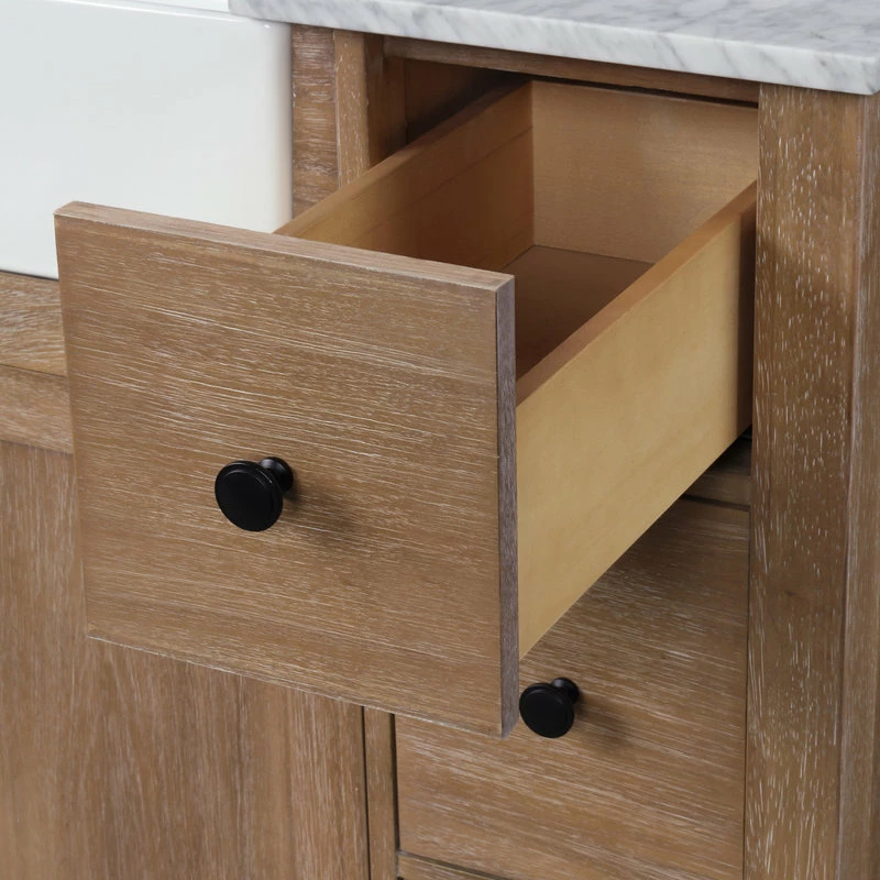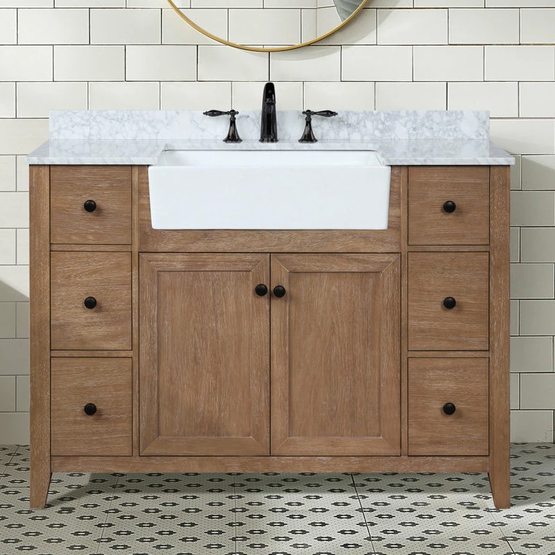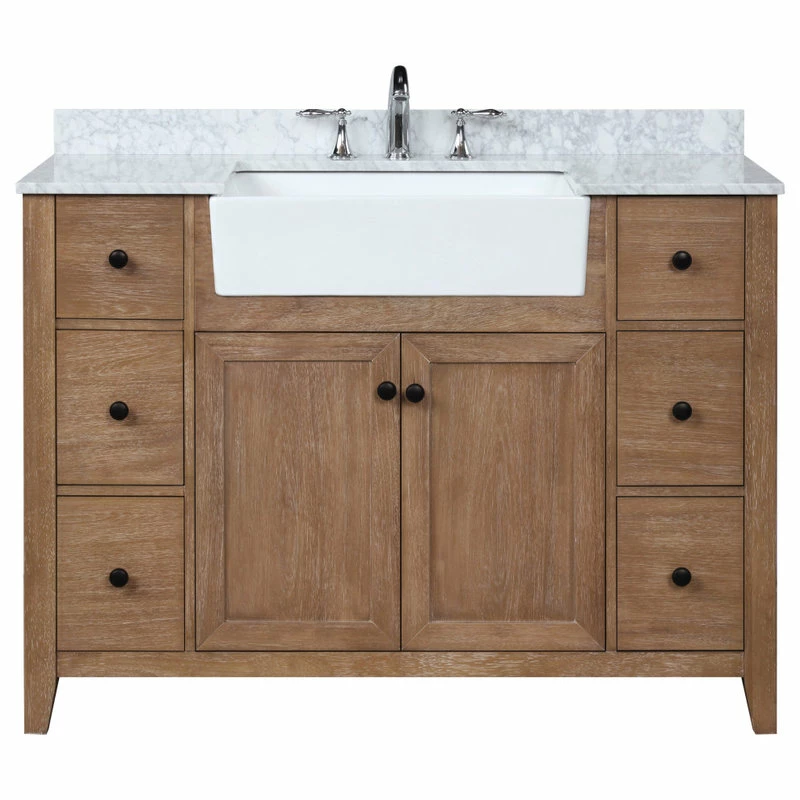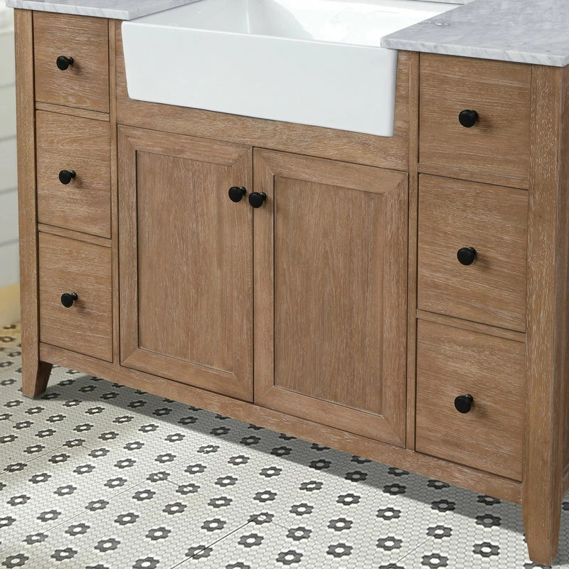 The 48″ Sally single sink bathroom vanity will be the centerpiece of your bathroom remodel. Skillfully constructed of solid wood to last a lifetime. Skillfully finished with raised grain to give a distressed and reclaim wood look. Six solid wood dovetail drawer with full extension glides give you all the necessary storage room for your daily toiletries.