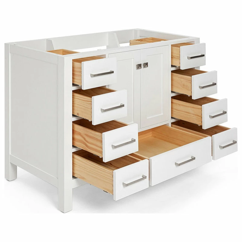 The Cambridge series from Ariel Bath is the perfect choice for those looking for a transitional bathroom vanity. These units are available in single or double sink models and are also available in Espresso, Gray, or White finish. Made from solid hardwood plywood, these models will be sure to last and bring beauty to any bathroom environment.