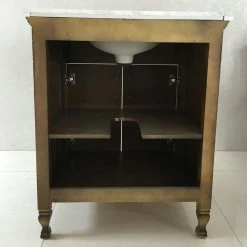 This beautiful wooden vanity is perfect for any powder room or small bathroom. The vanity’s large door conceals storage for anything from bath towels to toiletries.