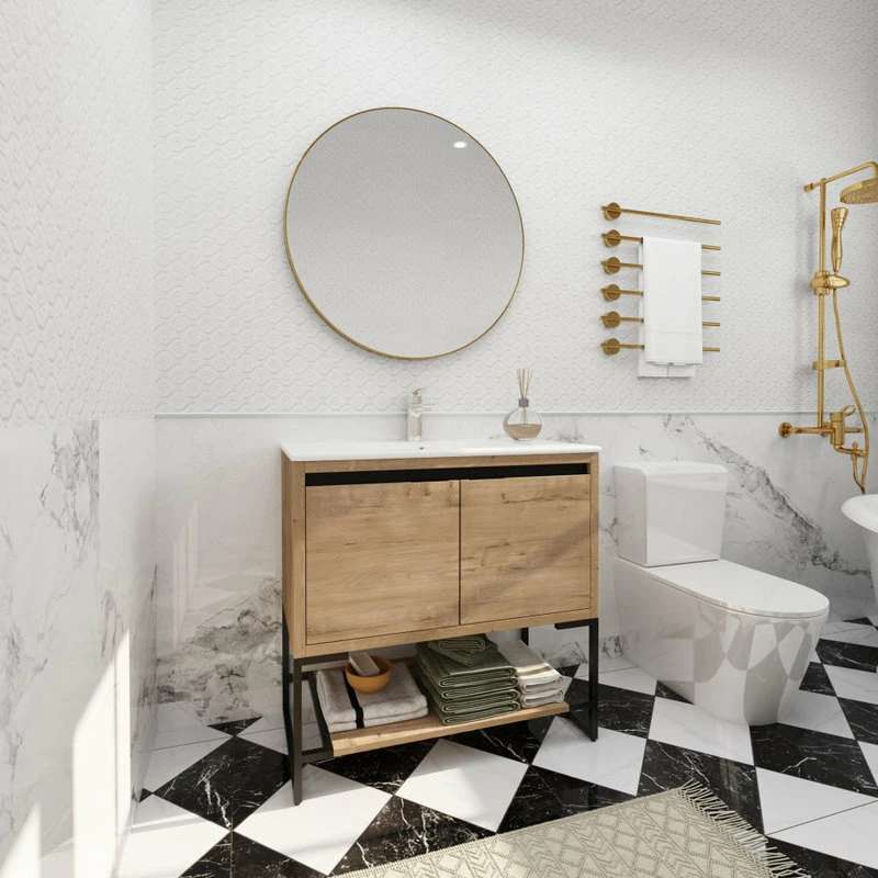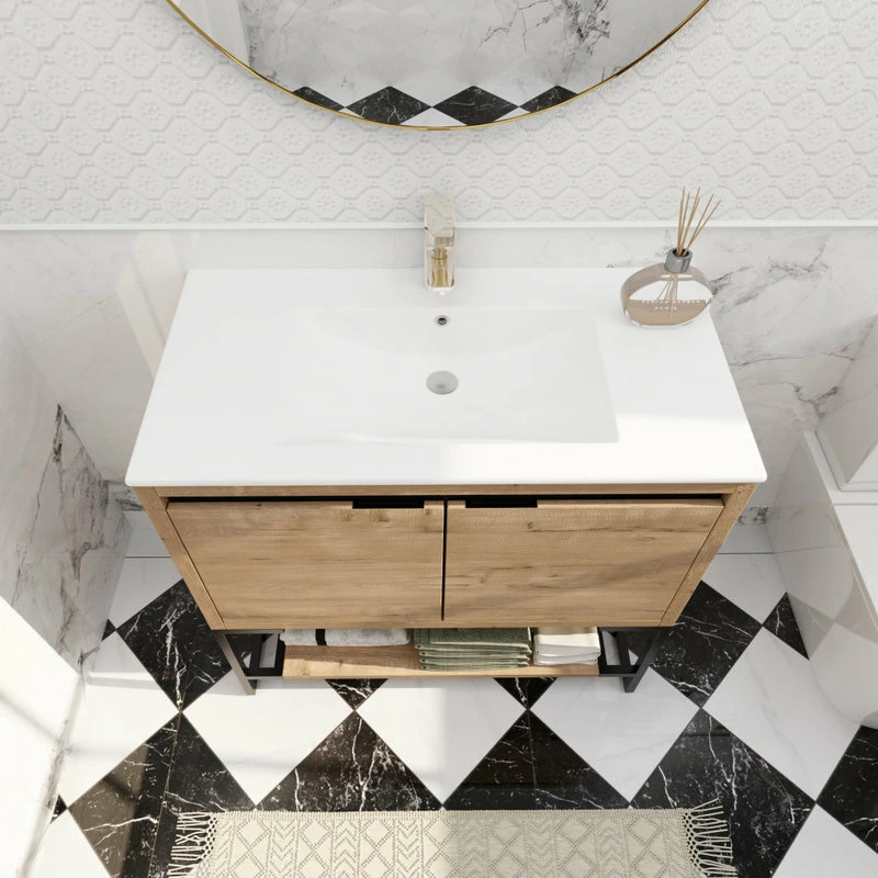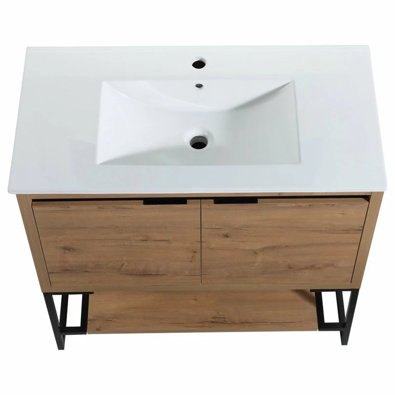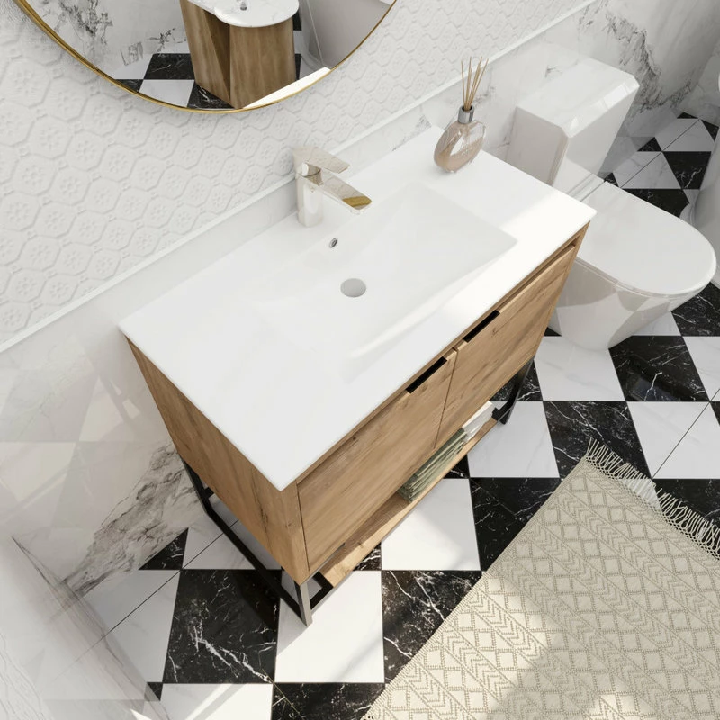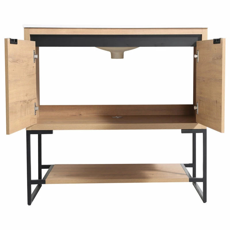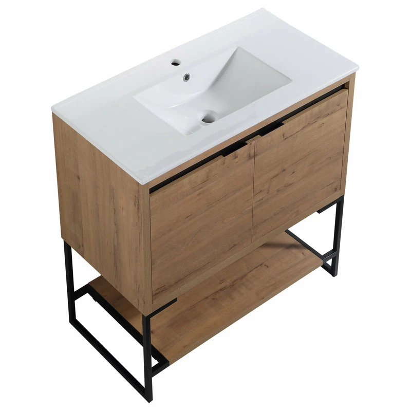 This modern bathroom vanity not only has a closed cabinet to store personal belongings to prevent dusting, but also has an open shelf to place some daily necessities, both the cabinet and the open bottom shelf are spacious, it offers sufficient bathroom storage. They will easily accommodate your essential toiletries and bath items.