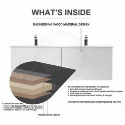 - Vanity Base Materials: 9 Layers of High Density Hardwood; 15mm of Thickness; Water-resistance; Splitting Resistance and More Stability & Strength.