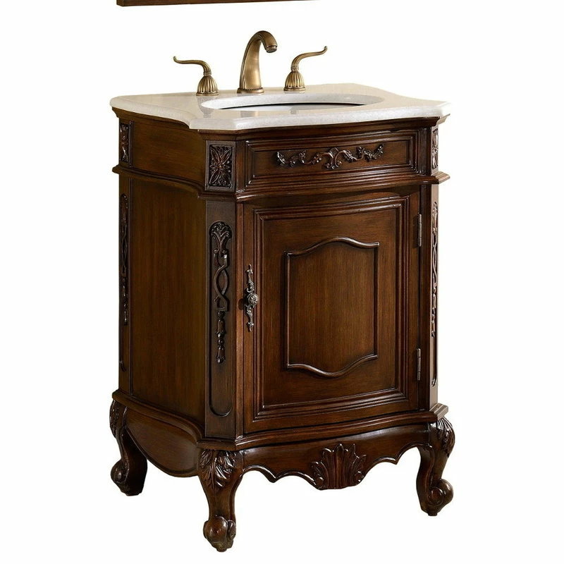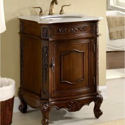 the debellis sink vanity is great for any powder room. This piece is carefully handcrafted of sturdy wood. A smooth, rich finish brings out the luster of the wood, while enhancing the intricate carved acanthus leaf details.