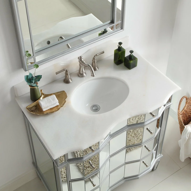 - Crystal white marble countertop (one large genuine piece)