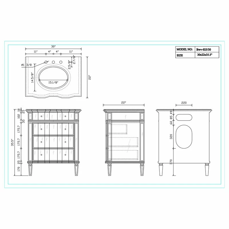Dimensions: 30 x 22 x 35.5″h. Approx.