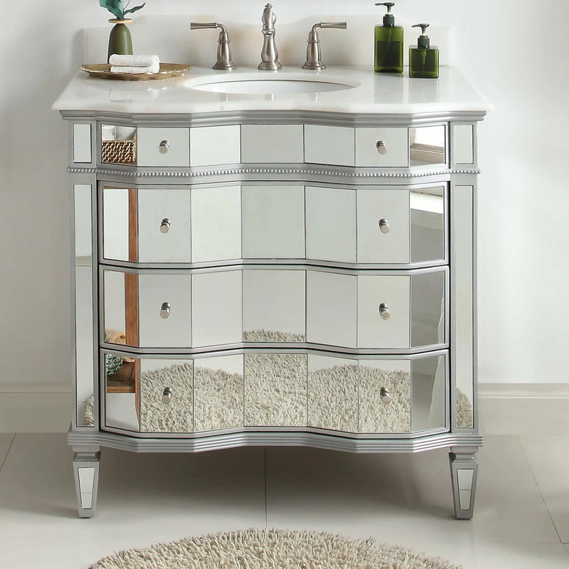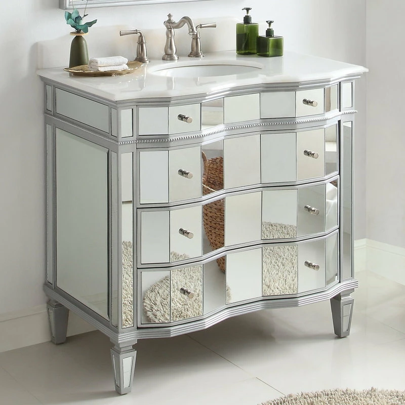 - Beveled mirror veneer with silver metallic trim