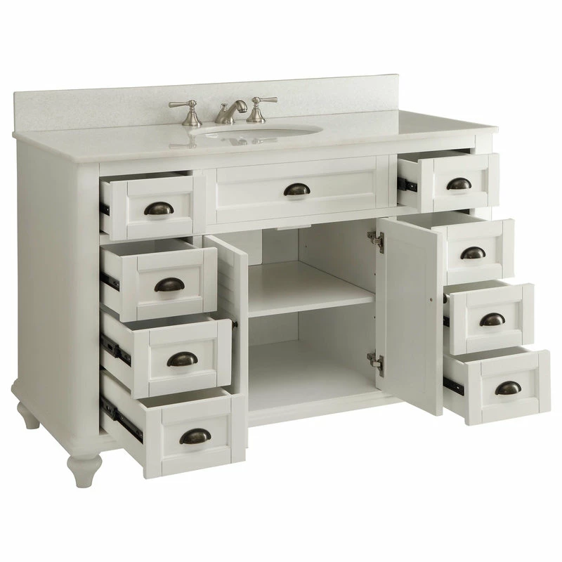 - Back panel pre-cut opening for easy plumbing access