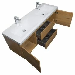 Once considered a niche design feature, handleless bathroom vanities have grown in popularity, fueled by an increasing demand for contemporary styles, minimalist looks and the need to maximize space. Handleless design creates a streamlined flow of bathroom units thatβs beautiful as well as efficient. The resulting look is chic, clean and clutter-free. This handless 59″ Angela double vanity features (2) soft-closing drawers and (2) doors.