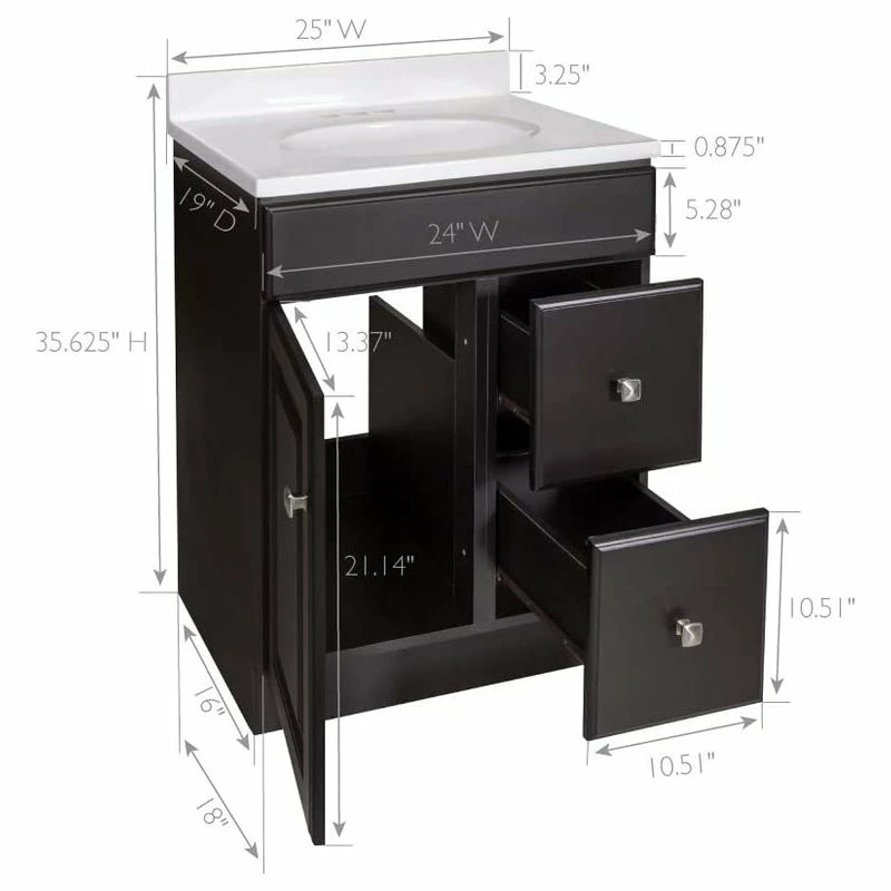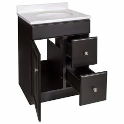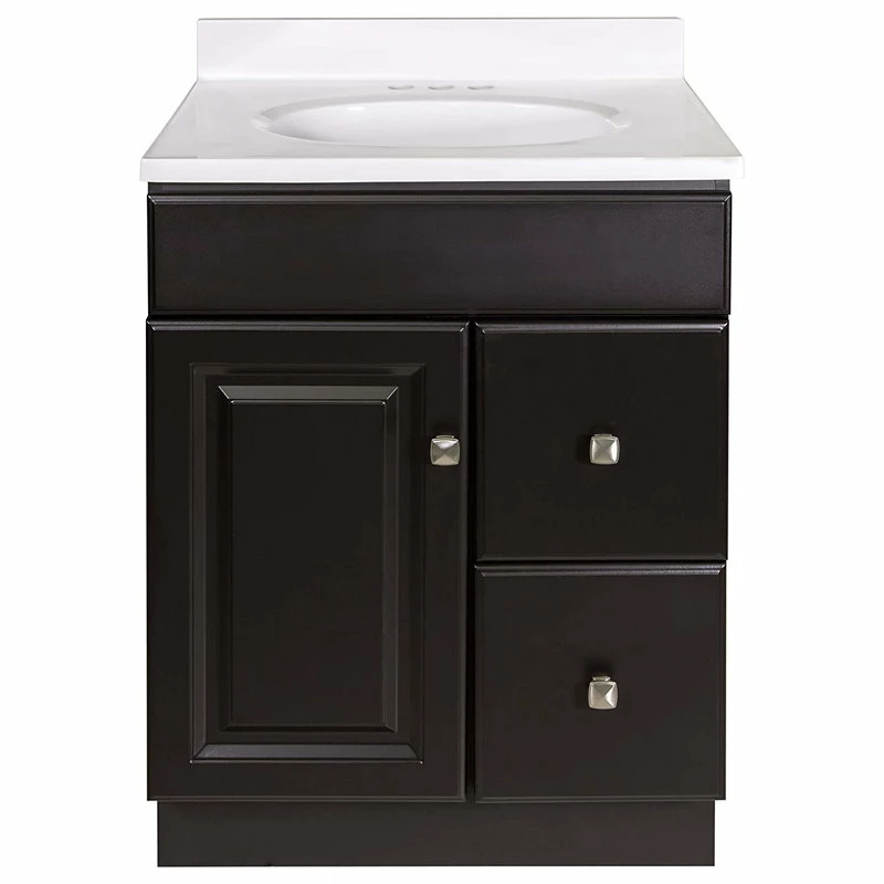 - Single sink bathroom vanity set with 1 reversible door and 2 fully functional drawers in a durable, water-resistant Espresso finish