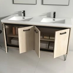 Be the first to review “Best deal 🎁 Dowell K&B Supplies Bonnie 60″ Double Bathroom Vanity Set White Resin, Tan/Wood-Grain 🛒” Cancel reply