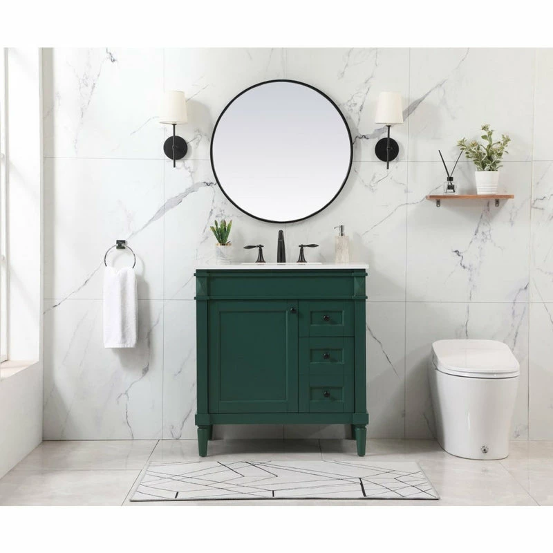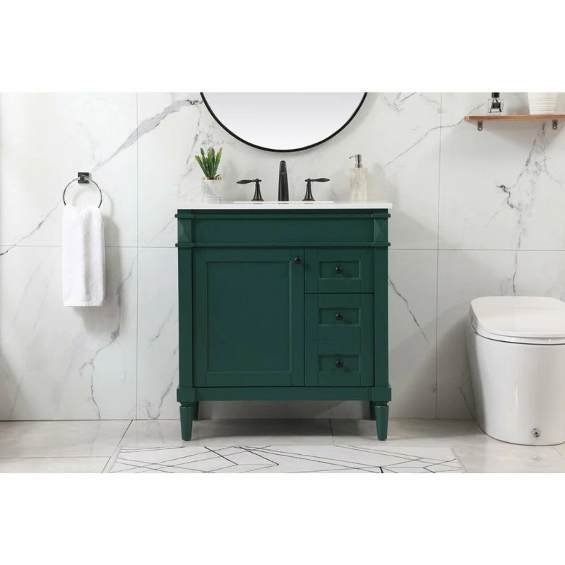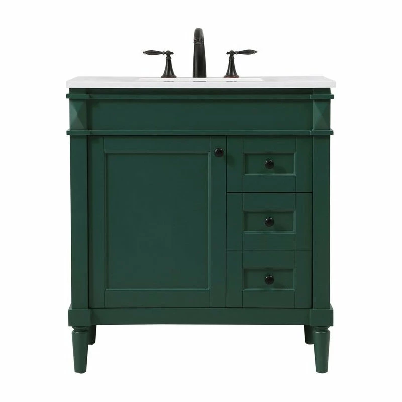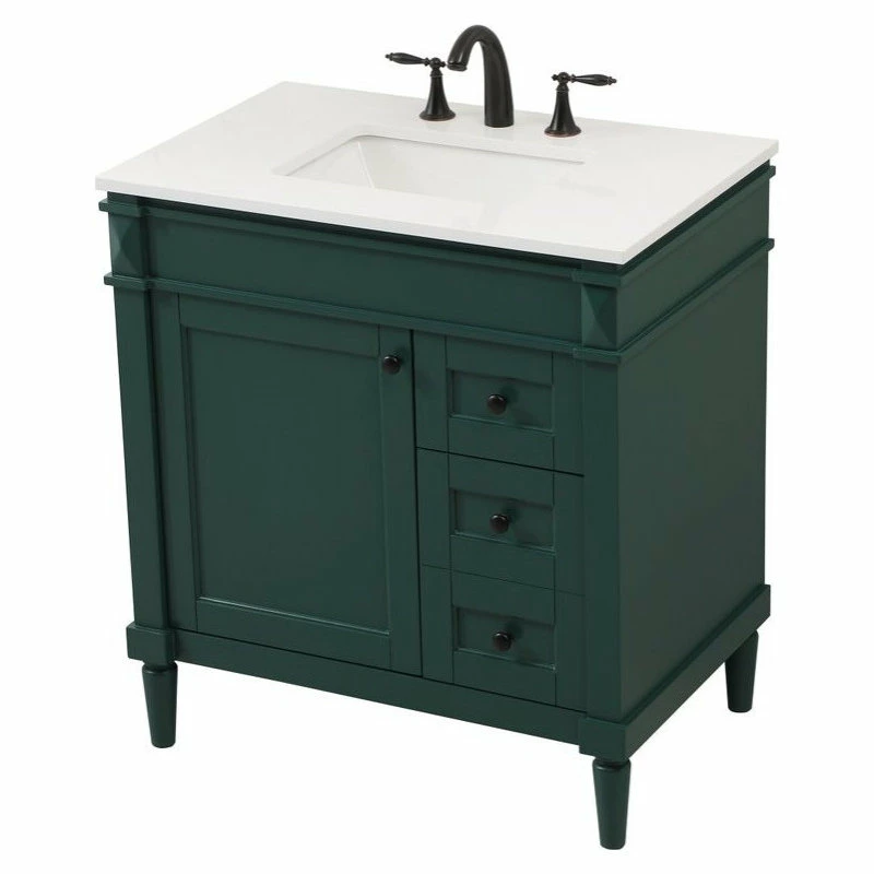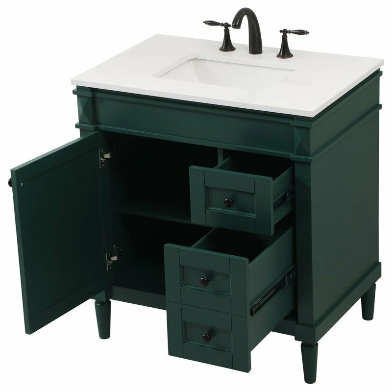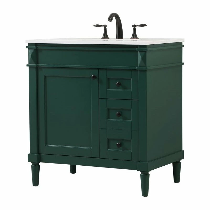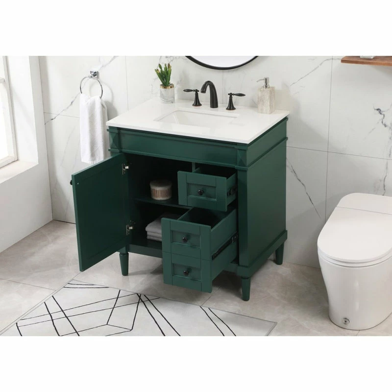 This transitional vanity is a beautiful piece of bathroom furniture will look amazing in your design scheme. The cabinet features a shaker style smooth door panel with simple round knobs and soft close hinges provide ample room for accessories. Packed with multiple side drawers with soft close glides for added comfort and full access to bath supplies. Convenient deep drawer stores all of your tall bath essentials. Constructed of engineered wood and solid wood legs with hand painted finish. The durable quartz countertop is a versatile material in an ivory white finish. Minor assembly of the legs needed to get this vanity up and running.
