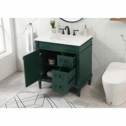 - Crafted with durable quartz top in ivory white finish and vanity base is hand painted