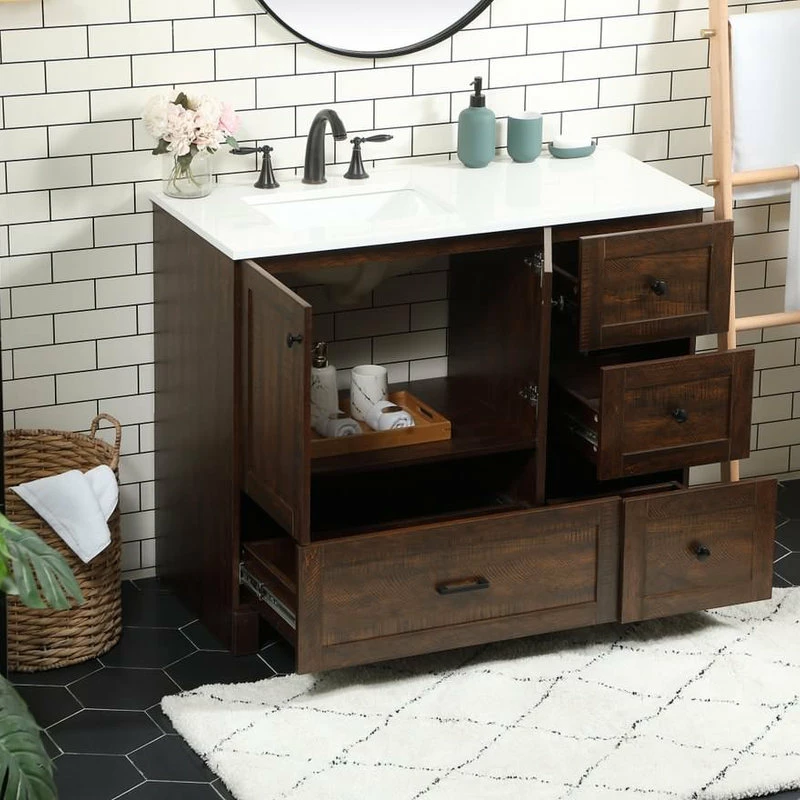 Budget 🔔 Elegant Furniture & Lighting 36″ Single Bathroom Vanity Set, Teak 🔔