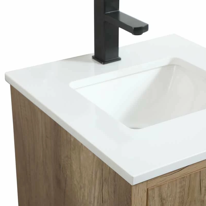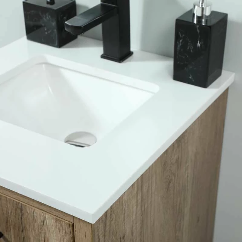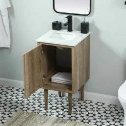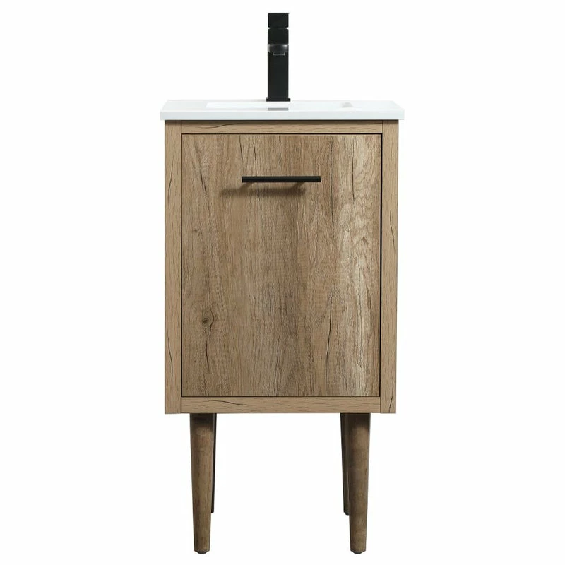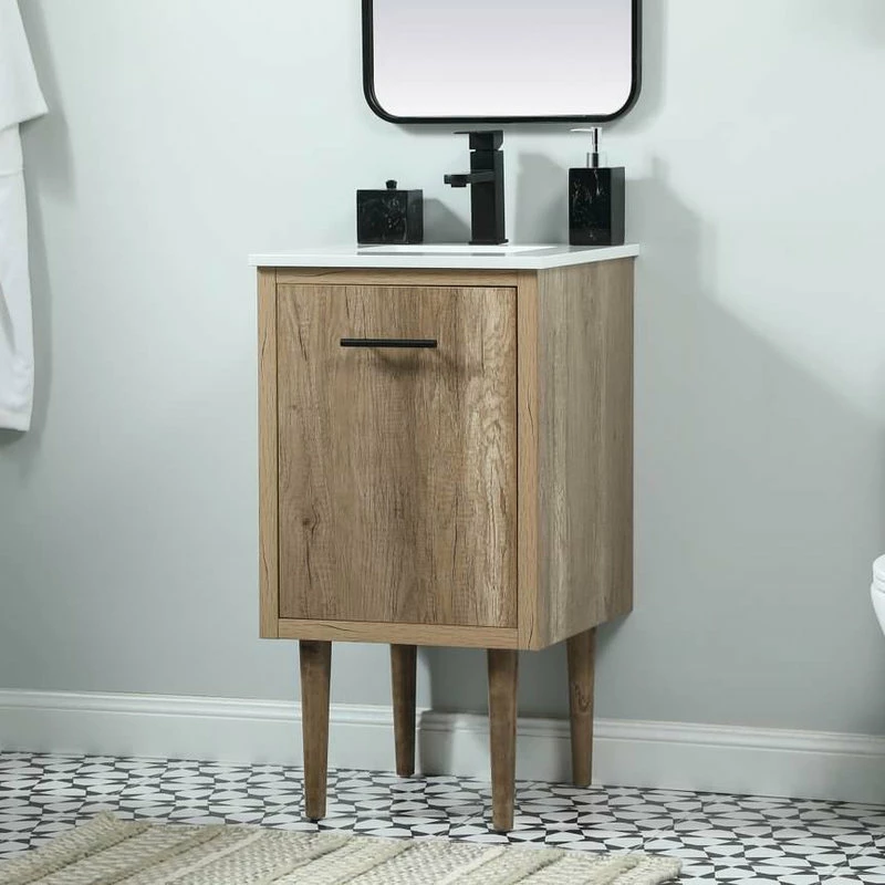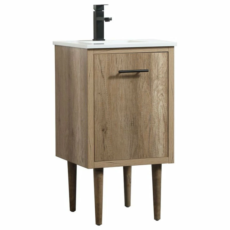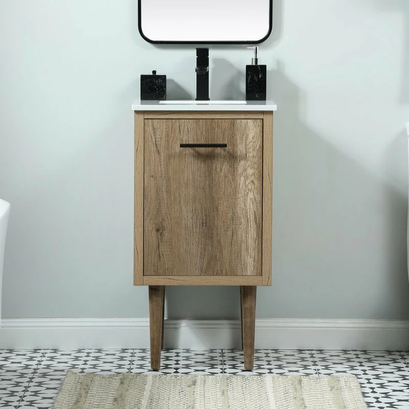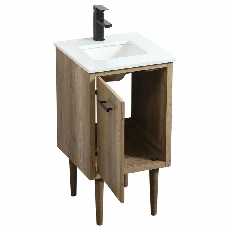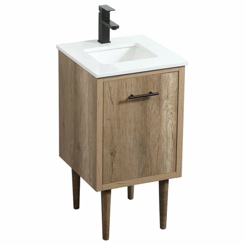 Delve into a world of minimalistic fashion and contemporary styling with this midcentury modern vanity. The clean lines anchors the design, while the straight tapered cylinder legs add subtle interest. Bar pull handle adorns the soft closing door hiding the base of the rectangular porcelain sink and letting you store your bathroom necessities and toiletries. The compact size makes it the perfect vanity for any bathroom or powder room, regardless of size. Whether you want to use this as a floating vanity or a freestanding vanity, the choice is yours. The durable ivory white quartz countertop complements the manufactured wood base vanity and is built to last.