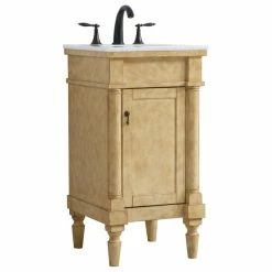 The subtle beauty of the Lexington collection 18″ vanity in an antique beige finish exudes comfortable luxury. Its modern, yet traditional beauty will surely dress up your bathroom or powder room without any fuss. The white marble countertop with occasional coffee color veins and porcelain undermount sink shows quiet opulence, and the legs support upright without fail. Antique bronze hardware complements the refined beige finish, with a pull adorning the cabinet door, showcasing ample storage space within. Whether this compact vanity is in your bathroom or for guests, its presence will surely elevate the aesthetics of your room.