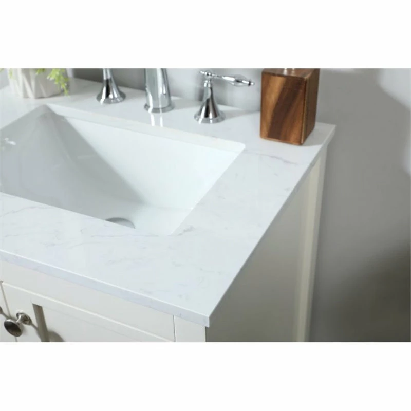 - Comes with an undermount porcelain sink and a durable calcatta quartz stone top