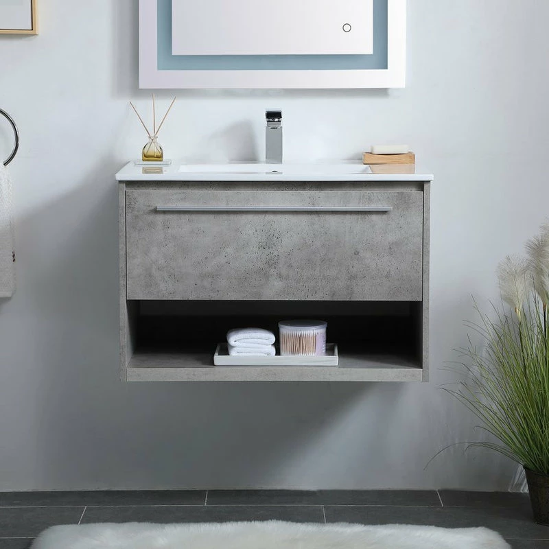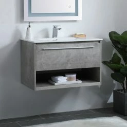 - 30 inch Single Bathroom Floating Vanity in Concrete Grey